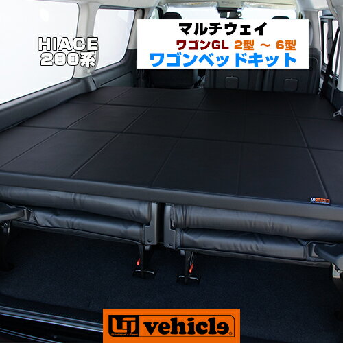 ハイエース200系 MULTIWAY WAGON BED KIT マルチウェイワゴンベッドキット 2型 〜 6型(最新) ワゴンGL用 レザーブラック+20mmウレタン 安心の日本製!!ステンレスフレーム!!1年間保証付【ユーアイビークル/UIvehicle】