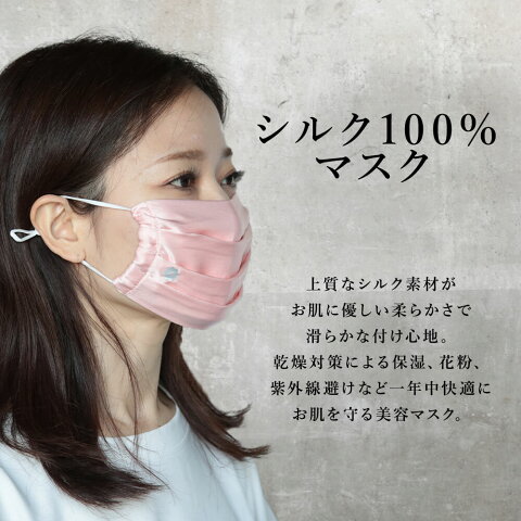 シルク100%マスク は なめらか な 肌ざわり 美しい 光沢 高級感 が 特徴。