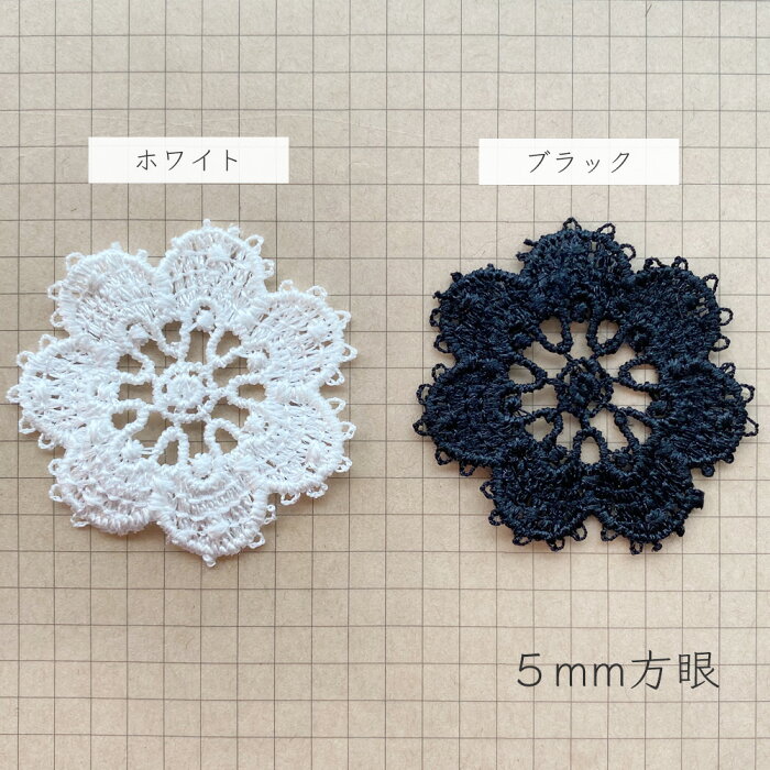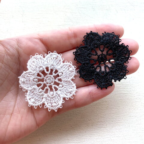 ケミカルレース モチーフ 丸7弁花 直径約45mm(ホワイト・ブラック)*