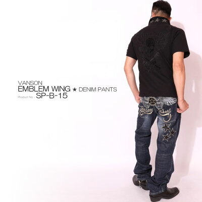 マラソン期間中エントリーでP最大15倍★【あす楽対応】VANSON バンソン エンブレム ウィング 刺繍 USED加工 デニム SP-B-15 ジーンズ ボトムス(RCA) ※裾上げ不可