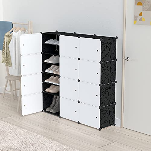色:黒+白 サイズ:3*8 SIMPDIY 下駄箱 収納靴箱 DIYブーツラック 組立式玄関収納 シューズラック 省スペース 靴箱 ラック 大容量 便利な収納ボックス 防塵・防汚・防水 黒 * おしゃれ 白 shoe rack
