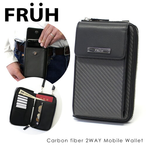 【送料無料】FRUH リアルカーボン 2WAY モバイルウォレット ベルトポーチ ベルト通し スマホポーチ メンズ 財布 カーボンレザー 牛革 本革 ベルト通し スマホ ホルダー 腰 小銭入れ スマホケース 携帯電話 ケース ベルト 財布 革 カードケース 男性 小物入れ マルチケース