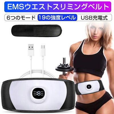 EMSスリミングベルト EMS腹筋ベルト ジェルシート不要 USB充電式 腹筋パッド 腹筋トレーニング ウェストベルト トレーニン器具 トレーニングマシーン 腹筋マシン 6つのモード ゆうパケット 送料無料