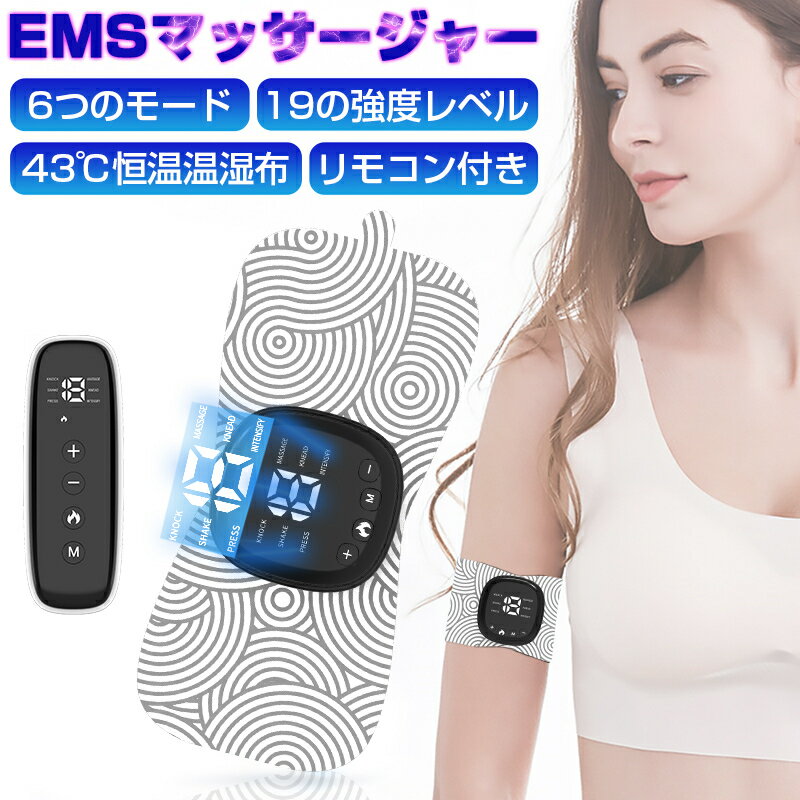 EMSマッサージパッド EMSパルス スポーツ フィットネス 腹筋ベルト ダイエットグッズ 6つのEMSモード 1つの温湿布モード 19の強度レベル 43℃定温温湿布 貼るだけ リモコン付き 日本語取扱説明書付き ゆうパケット 送料無料