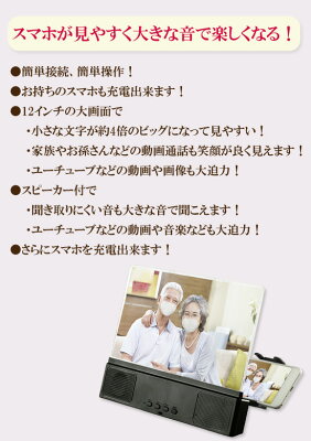キヨラカ スマホが見やすい 約4倍のスマホ拡大スクリーン SK-S01 約4倍の大きさに!スマホ拡大スクリーン スマホが見やすく大きな音で楽しくなる、スマホ拡大スクリーン!12インチの大画面で、小さな文字が約4倍の大きさに。
