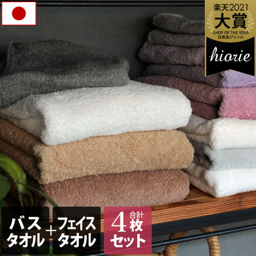 日本製 ホテルスタイルタオル バス2枚+スタンダードフェイス2枚 合計4枚同色セット 楽天1位受賞 / バスタオル 約60×130cm スタンダード フェイスタオル 約34×86cm タオル 厚手 ギフト