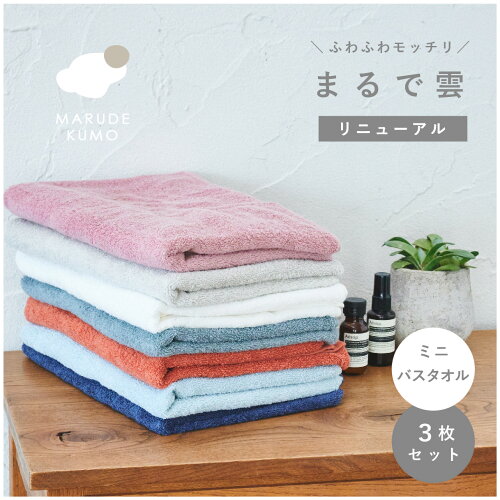 《月間優良ショップ》 ミニバスタオル まるで雲 3枚セット 50 100 ふわふわ モチモチ 厚手 セット バスタオル小さめ / 新色 ホワイト グレー ピンク ブルー